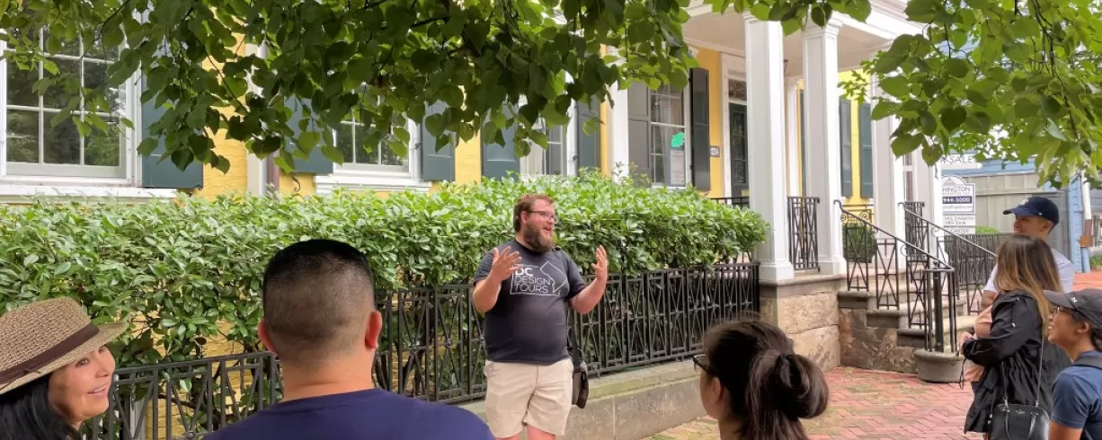 Meet your guide at the intersection of Thomas Jefferson Street NW and the C&O Canal. This 2.5 hour walking tour covers about 2.5 miles and ends at Georgetown Waterfront Park near 33rd St and Water Street. Private versions are also available—on foot, by car, or by coach. Visit www.dcdesigntours.com to learn more and reserve your spot.