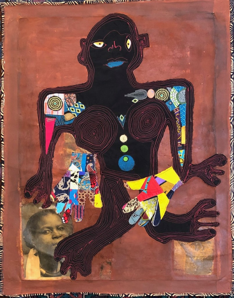 Lizette Chirrime (Inhambane, Mozambique b. Mozambique) creates intricate fabric collages on canvas that are at once celebratory and soul-stirring, as the artist flirts between figuration and abstraction to develop a unique—and distinctly African—visual language. Stitching together printed fabrics, beads, and other familiar objects in Southern Africa, Chirrime transforms simple materials into autobiographical and narrative tableaux freighted with deeply felt emotion and patterns of meaning. Many of her collages center maternal figures and stories of African motherhood, honoring their millennia-long legacy of strength and grace and positing their representation as a symbolic device.