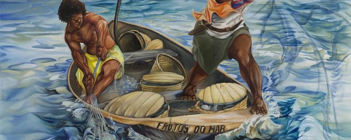 Pioneering DC artist Rik Freeman has been creating paintings and murals that focus on the African diaspora for over three decades. Wade in the Waters features artworks that engage themes of history, community, resilience, joy, and faith. The power and rhythm of water flows through the paintings—from the beaches of Bahia to the Anacostia River—sharing stories of both survival and triumph. Through a kaleidoscope of narratives, the exhibition draws from several of Freeman’s series, exploring waterways and their connection to the diaspora over generations.