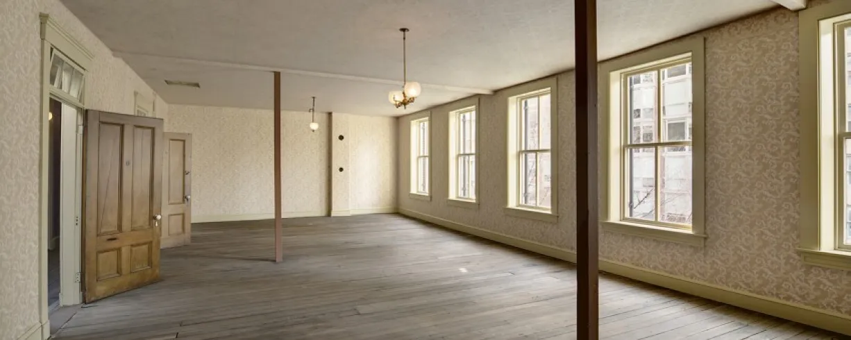 Located on 7th Street, NW, the third floor contains the restored rooms and items related to when Clara Barton lived at this location during and immediately after the Civil War. She used this property not only as her residence, but also to store the supplies she received for her work on battlefields, and later as an office to handle correspondence concerning missing soldiers.