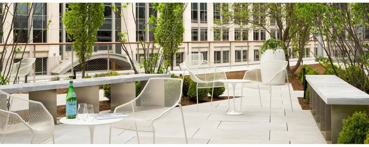 • Serene outdoor areas to enjoy weekend brunch, afternoon tea, or evening cocktails. Memorable meetings and weddings in an elevated event space with views of the Capitol