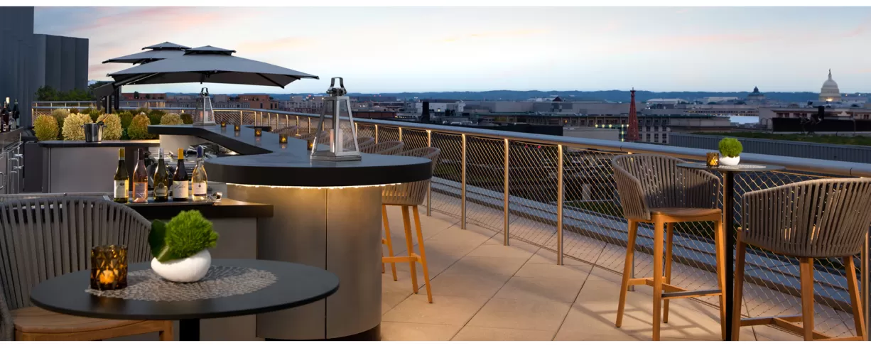 • Rooftop bar with unobstructed views of the District's most famous monuments
