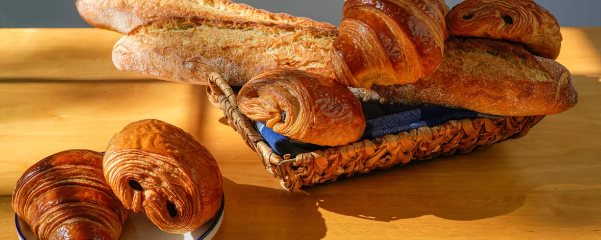 Start the day with the rich aroma of a golden Croissant, the crispy crackle of a Baguette or the irresistible pull of freshly baked Pain au chocolates.