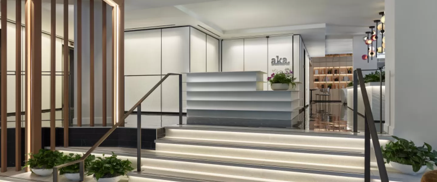 Hotel AKA Washington Circle offers a sophisticated stay in the vibrant Foggy Bottom/West End neighborhood in downtown Washington, DC. Conveniently located directly across from the Foggy Bottom Metro station, this boutique hotel features luxury accommodations perfect for both short and long-term stays, including contemporary guestrooms and spacious one-bedroom suites, many with terraces and full kitchens or kitchenettes.