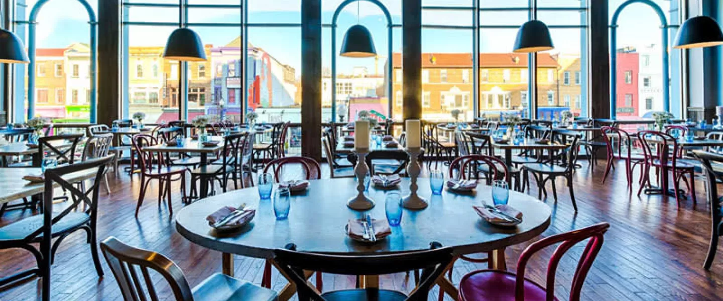 Located in in the heart of historic Adams Morgan, Roofers Union features classic American fare through a German gastropub lens. The menu, as designed by James Beard Semifinalist Chef Marjorie Meek-Bradley, changes seasonally but always includes snacks like the honey Sriracha wings, spinach and white bean dip with house made pretzel chips and crispy brussels sprouts. Known for their assortment of house made sausages including the innovative veal heart sausage and Bahn Mi Style Sausage Sandwich with chicken liver mousse and pickled vegetables, Roofers Union also offers a variety of sandwiches, hearty entrees, lighter fare and salads. Guests count the heirloom grain risotto, beer steamed mussels, and smoked half chicken among their favorites.