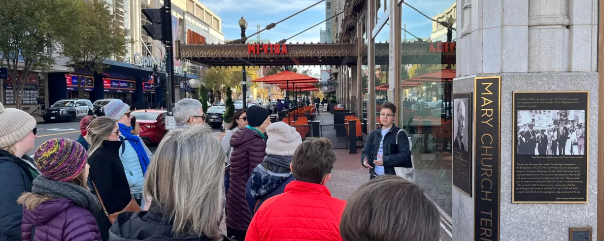 Tours are led by licensed professional tour guides and public historians who provide insight into life in DC from a local Washingtonian perspective. We also offer custom itineraries that include historical visits to house museums, memorial markers, and educational exhibits as well as experiences that support small woman-owned businesses and local organizations such as afternoon teas, chocolate tastings, or outings to women's professional sports games.