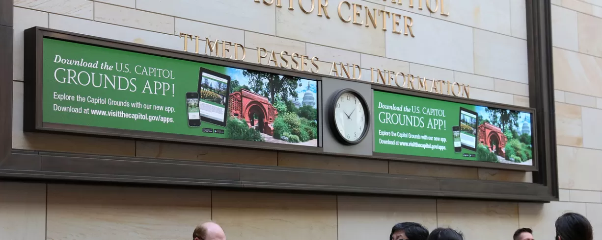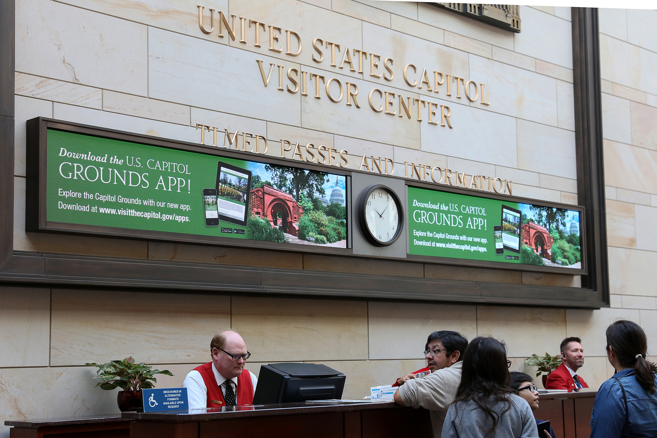 The Capitol Visitor Center also features a 500-seat Restaurant, two Gift Shops, and an Exhibition Hall which tells the story of the U.S. Congress and the Capitol.