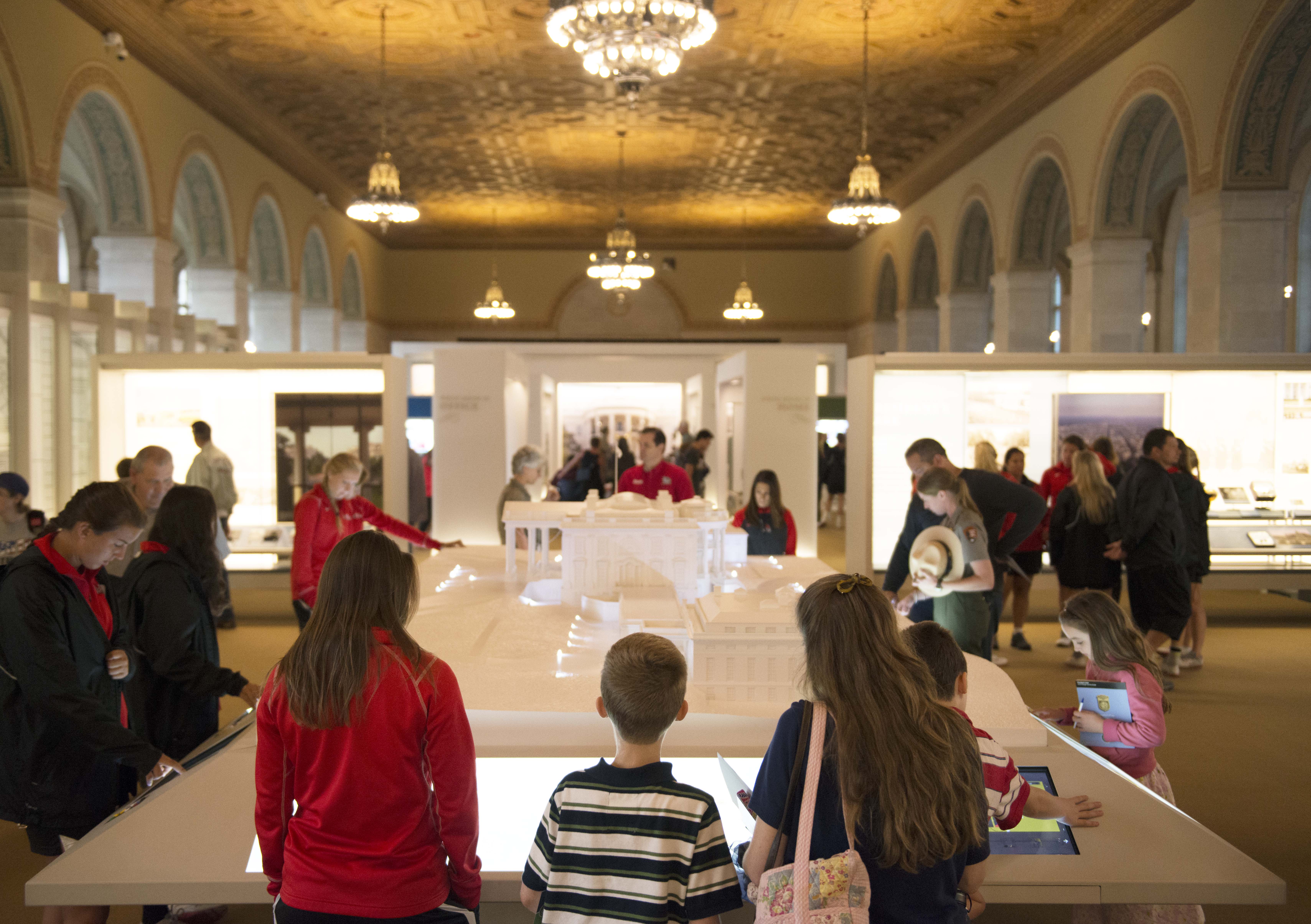 The White House Visitor Center is a nearly 1,600-square-foot museum-caliber visitor experience featuring interactive exhibits, a large-scale model of the White House, numerous tactile exhibits, museum galleries, a temporary exhibit area, and the White House Historical Association retail shop. The Visitor Center provides a window into the Executive Mansion and its history as a companion to a White House tour, or as a stand-alone experience for those without a tour. Nearly 100 artifacts are on display, some for the first time such as President Franklin D. Roosevelt’s desk.