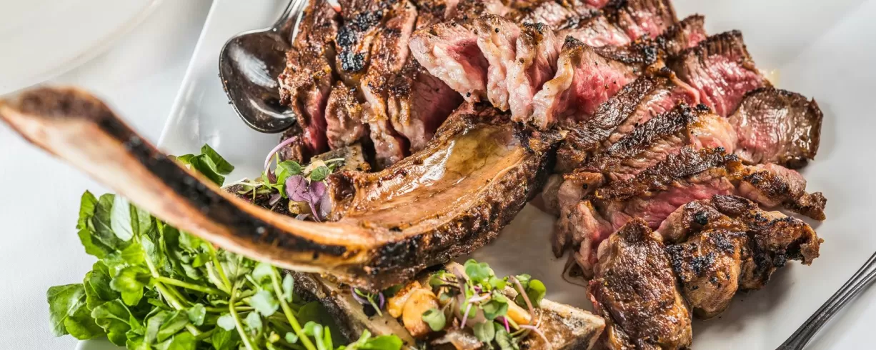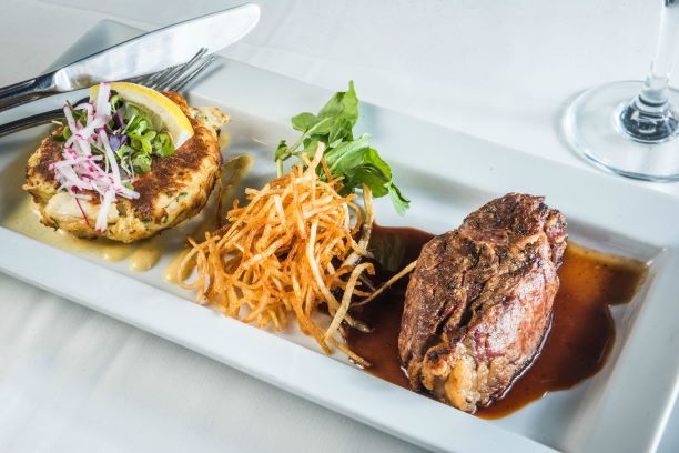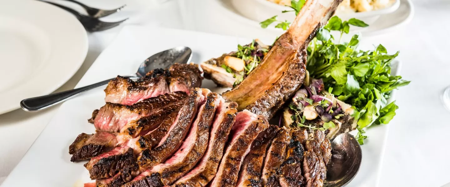Located 3 blocks west of the Convention Center. Steakhouse menu features Prime, dry-aged beef, chops and fresh seafood.