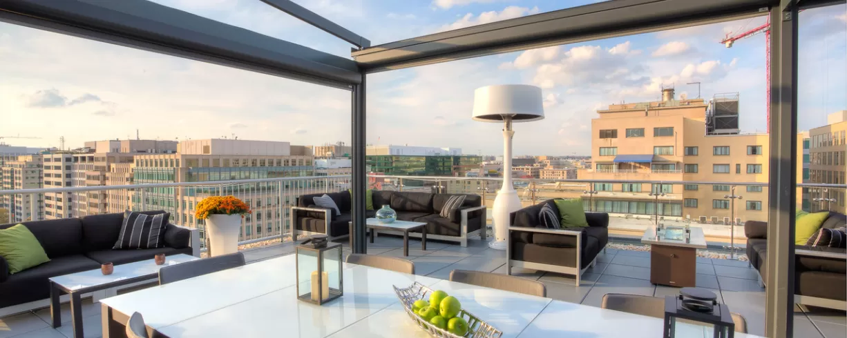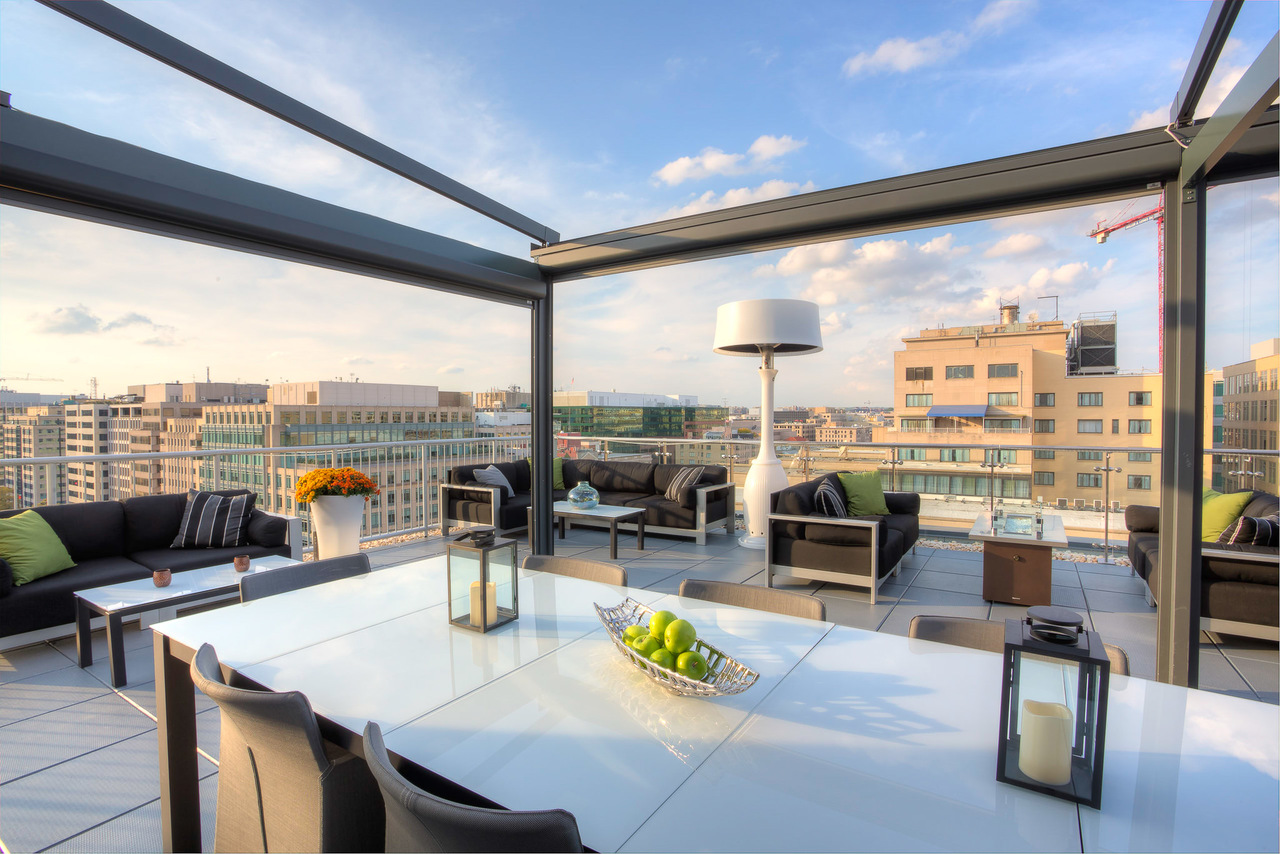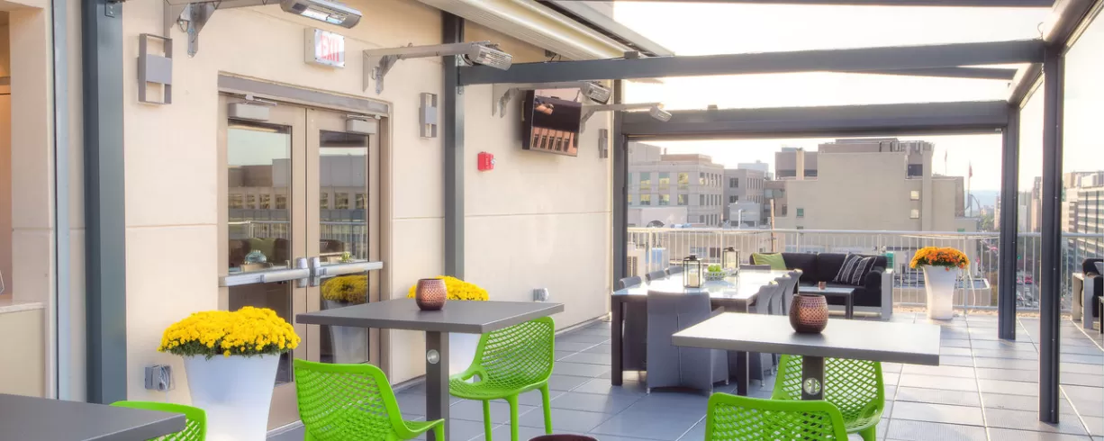 Hotel features the Ellipse Rooftop Bar - a sleek modern bar with sweeping views of downtown DC. Available to rent out for private events.