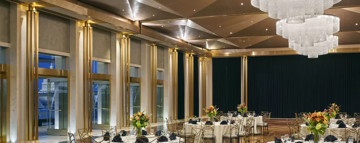 Gathering Room: Top-floor panoramic DC views, seats 400 theater-style or 500 reception