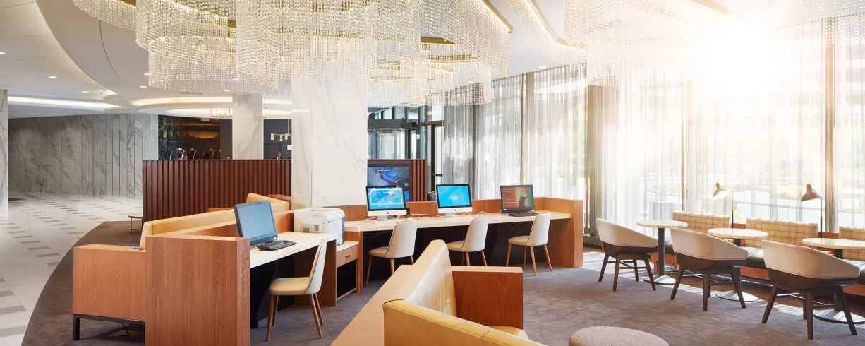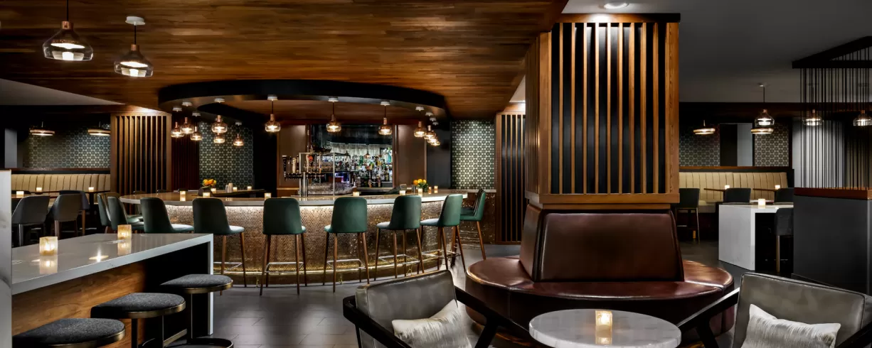 Recently RENOVATED and inspired by the hotel’s original design with classic white marble, warm birch woods and cool brushed steel, the bright and airy lobby is a hub for attendees to engage, grab a gourmet coffee at District Line Cafe & Market, enjoy handcrafted cocktails at Sidecar Bar or savor regionally-inspired cuisine at Four Oaks Restaurant.